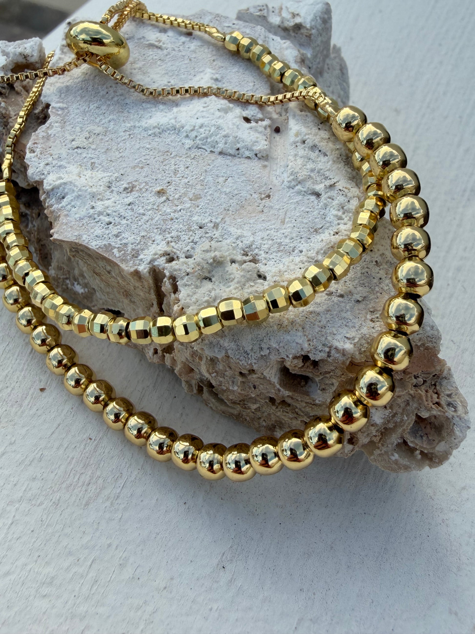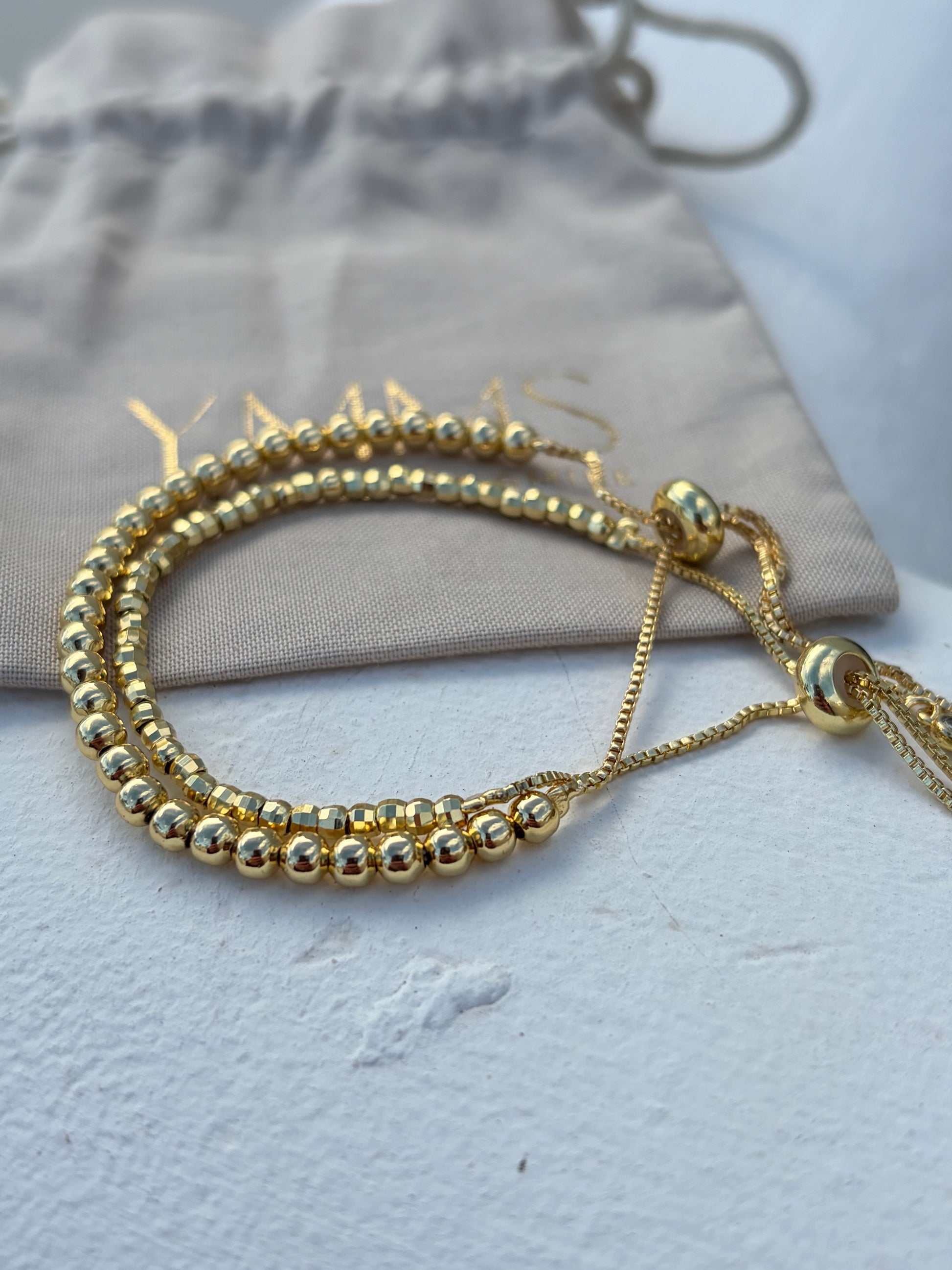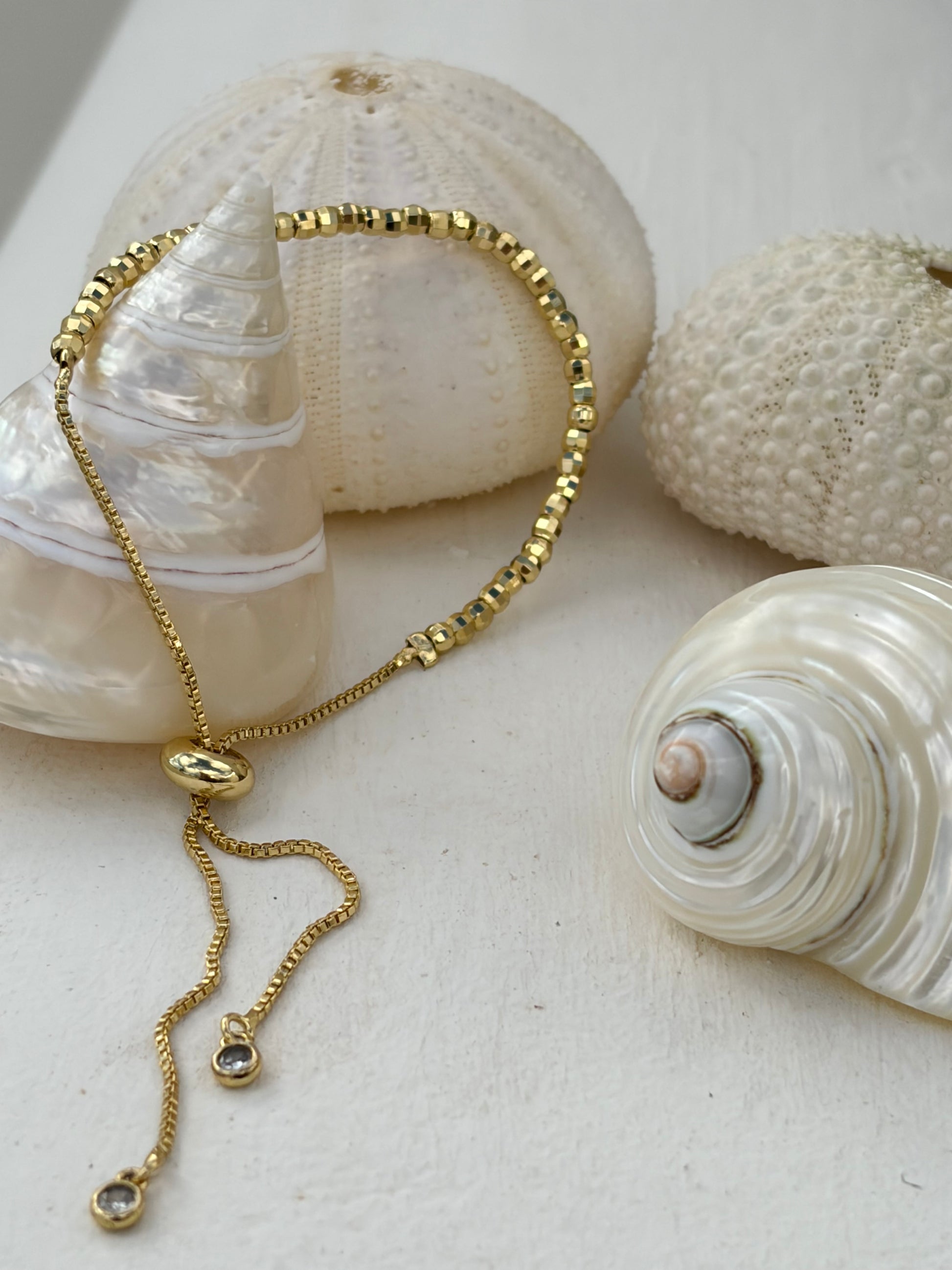 Armbandje met trekkoord, facetkraaltjes, goldplated