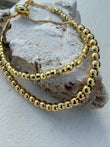 Armbandje met trekkoord, kleine ongelijke kraaltjes, verguld.