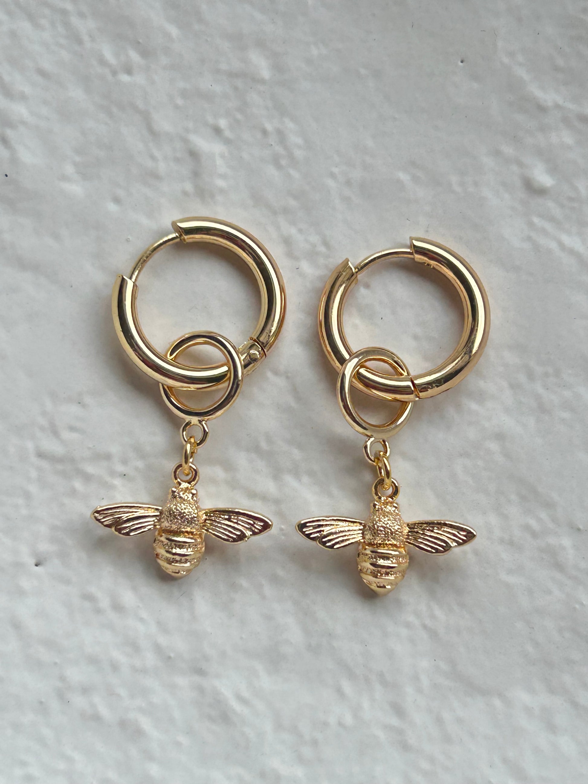 Bijtjes aan vergulde creolen.