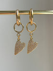 Leuke hartjes bezet met strass steentjes aan een vergulde creool.
