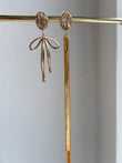 Prachtig verguld strikje en lint aan mat gouden stekertjes.