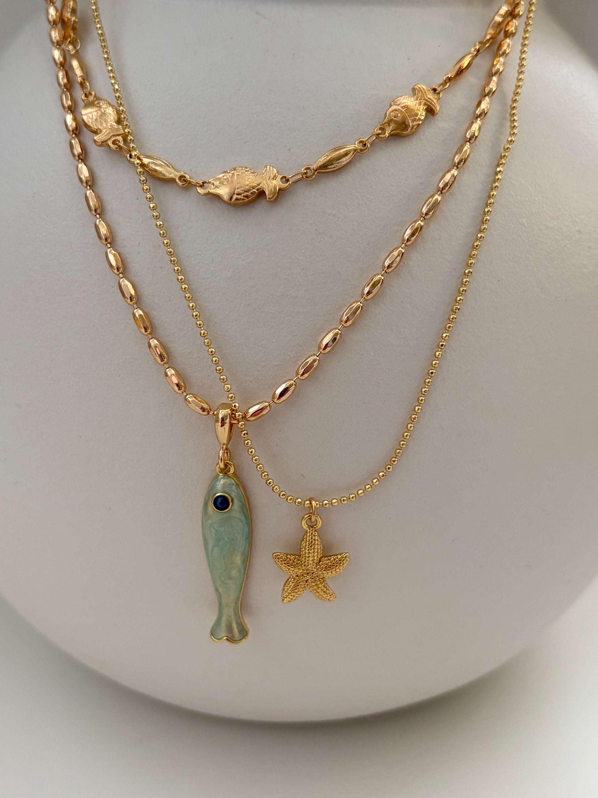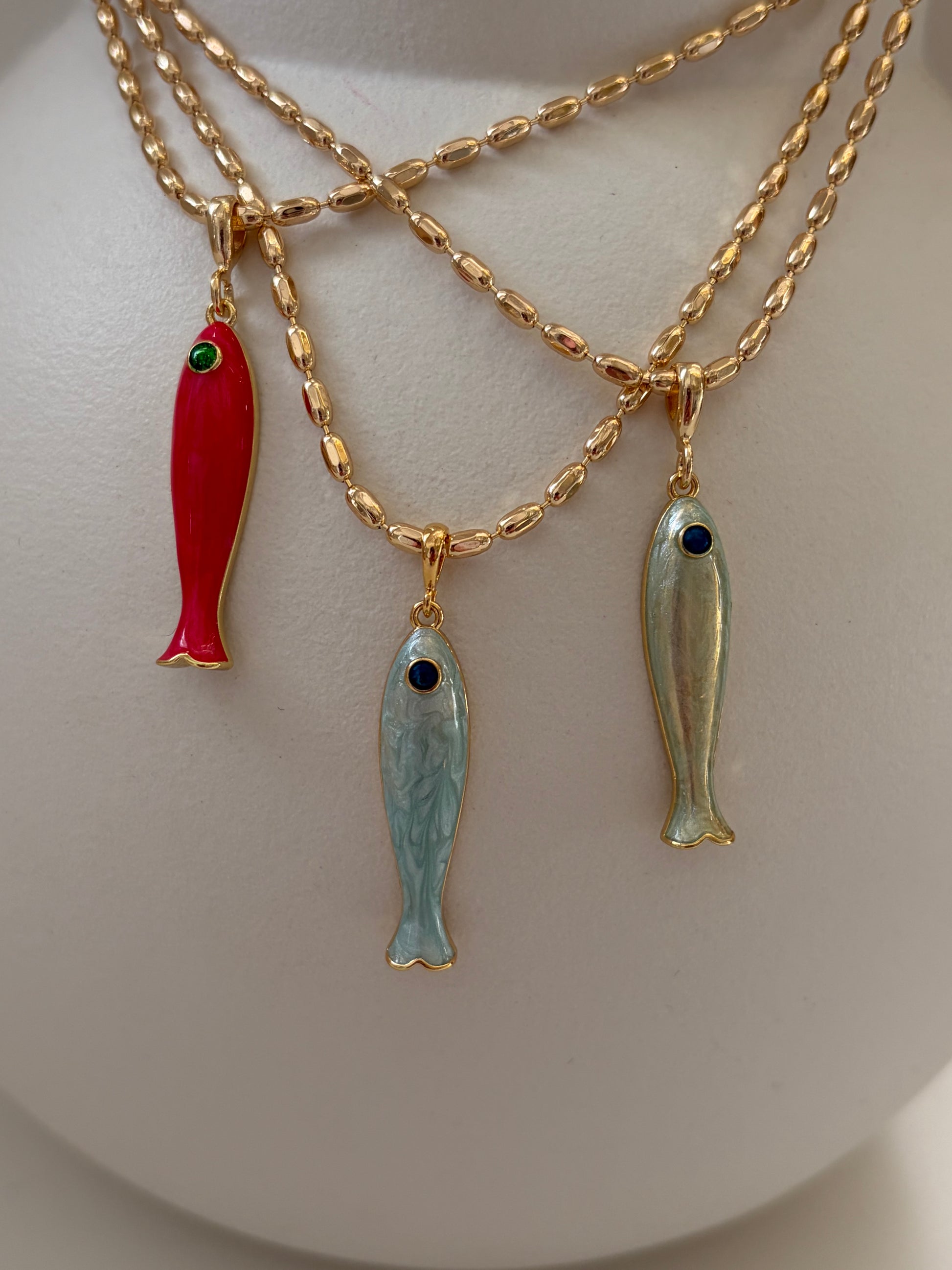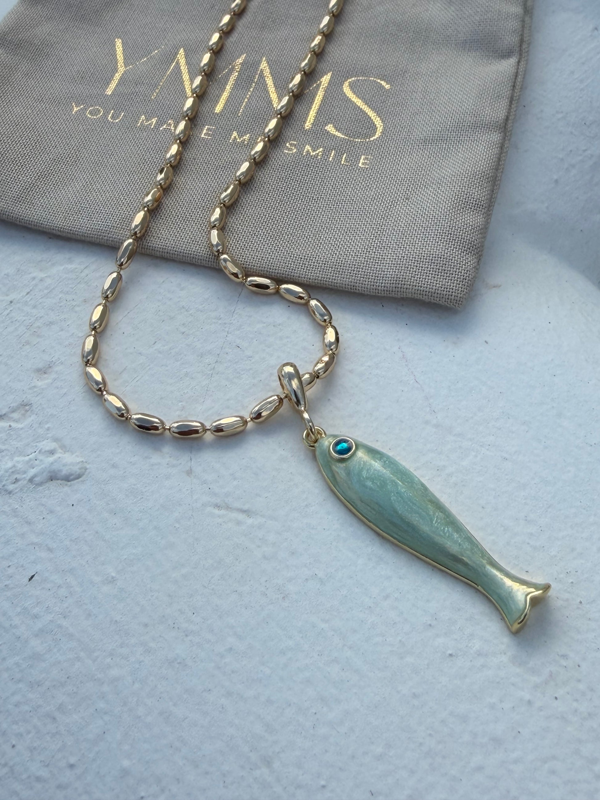 Vergulde ketting met mintgroene vis. Ook leuk te combineren met onze andere kettingen.