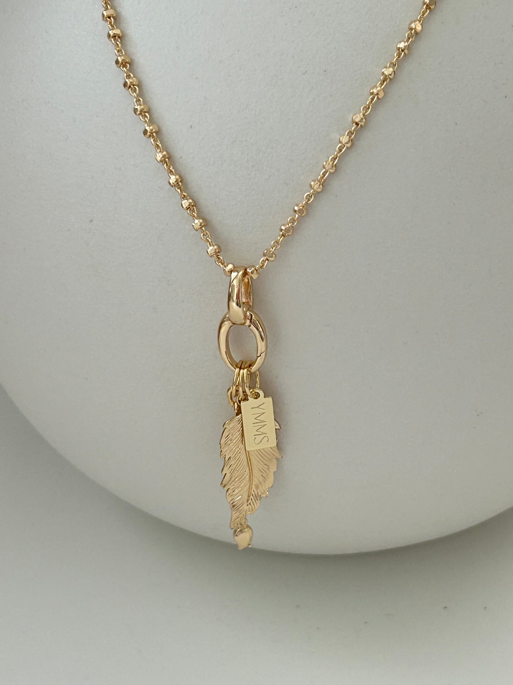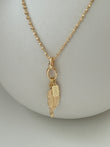Prachtige vergulde ketting met een veertje en en een kettinkje met een bloemetje.