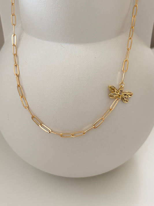 Vergulde schakelketting met kleine Libelle aan de zijkant van de ketting.