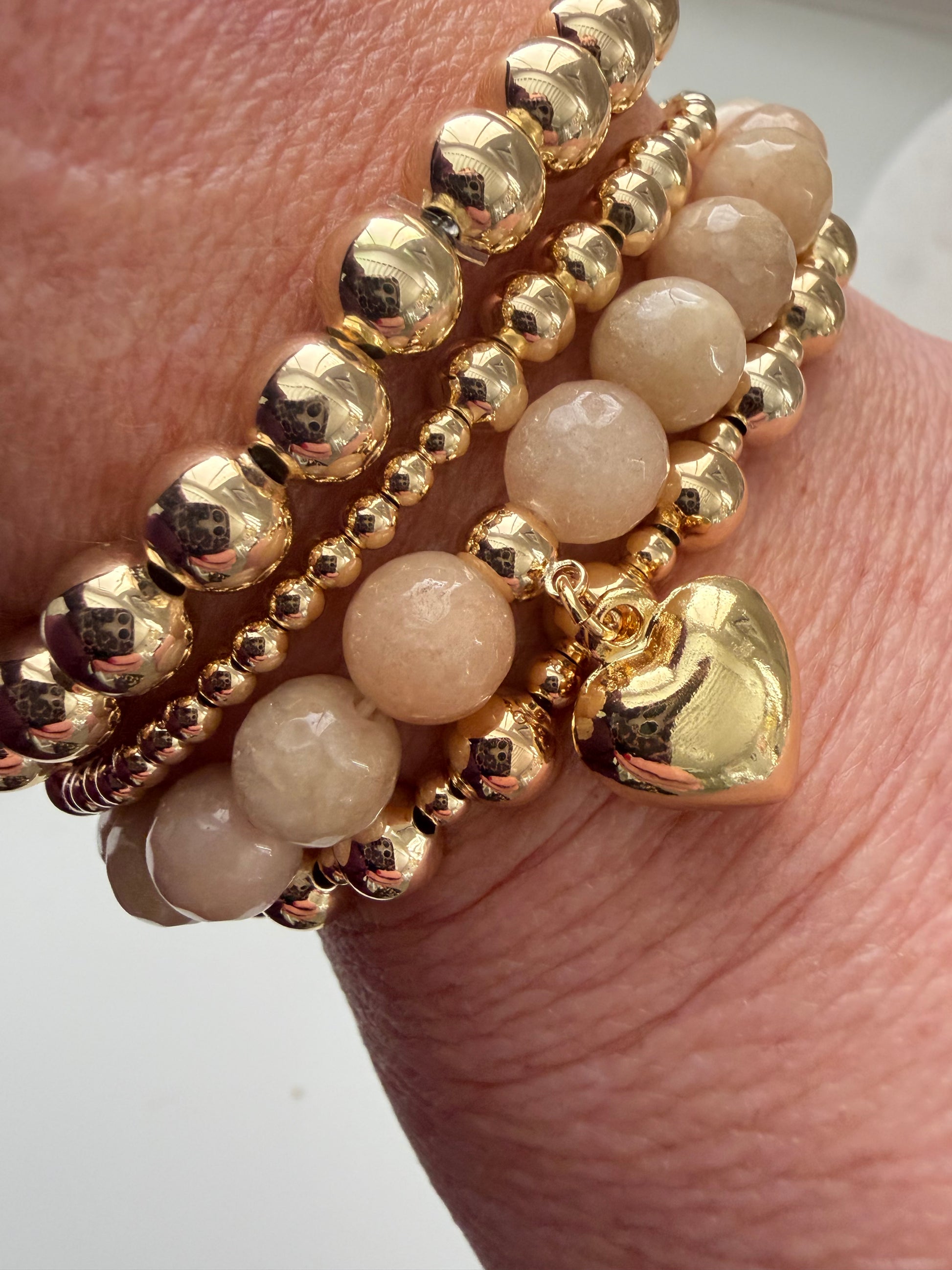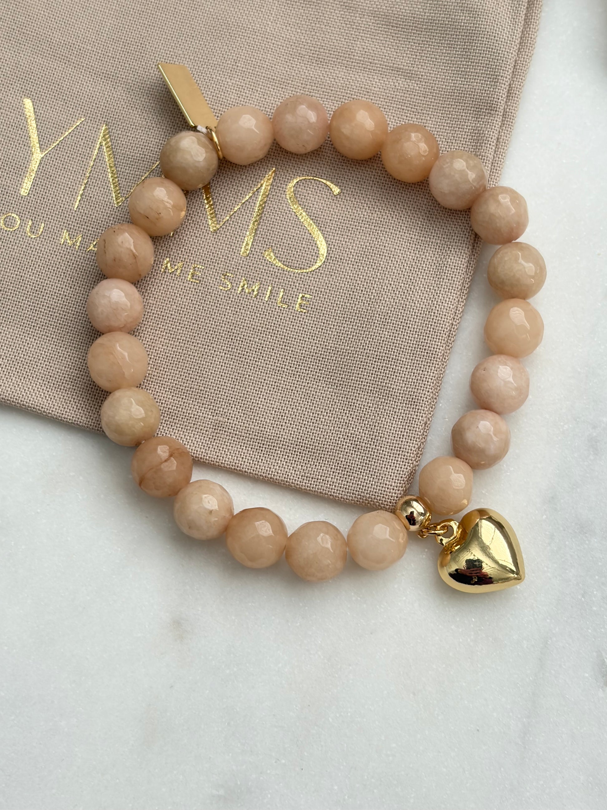 Beige kleurige natuurstenen armband met verguld hart.