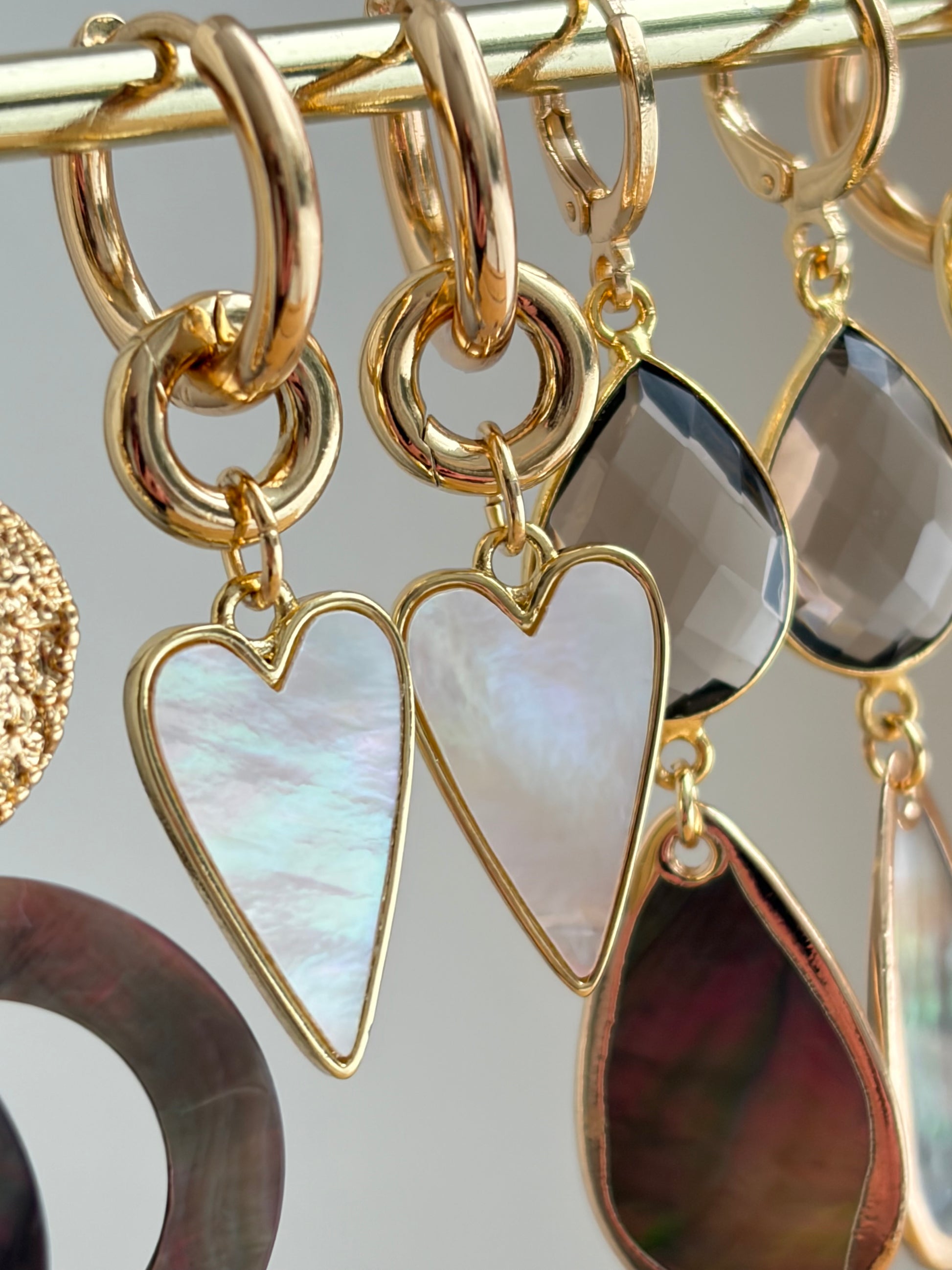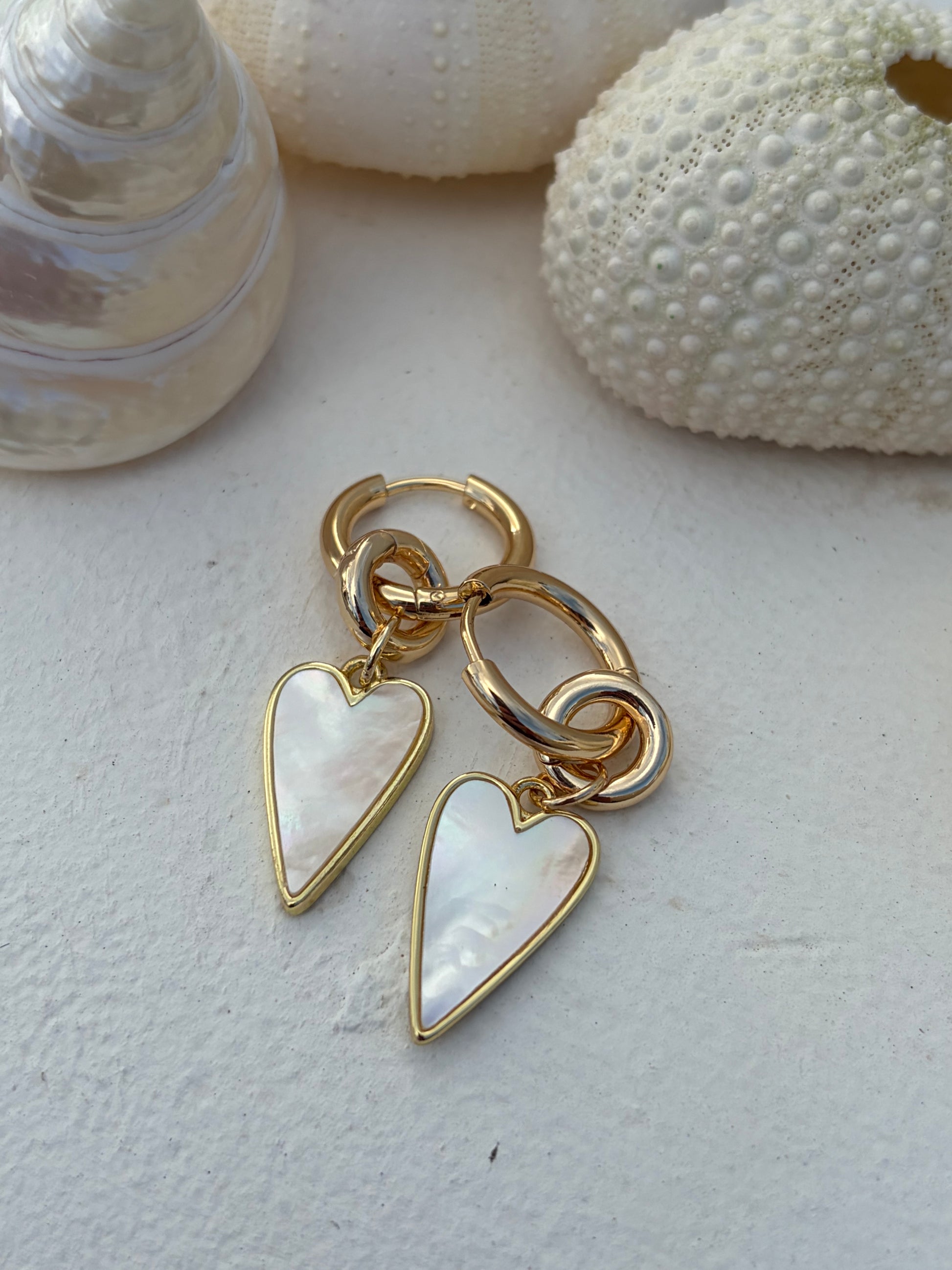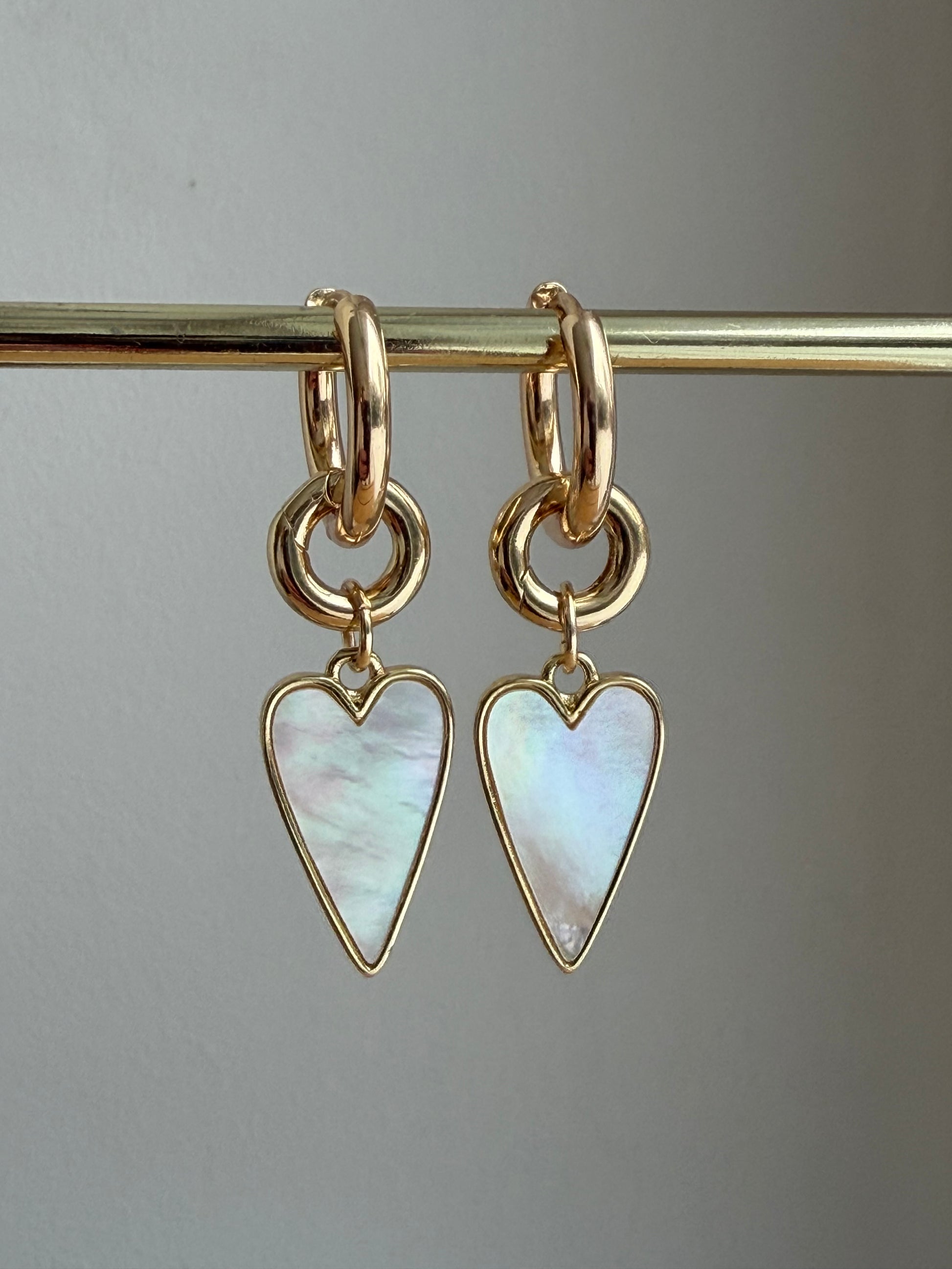Parelmoeren hart aan vergulde creool.
