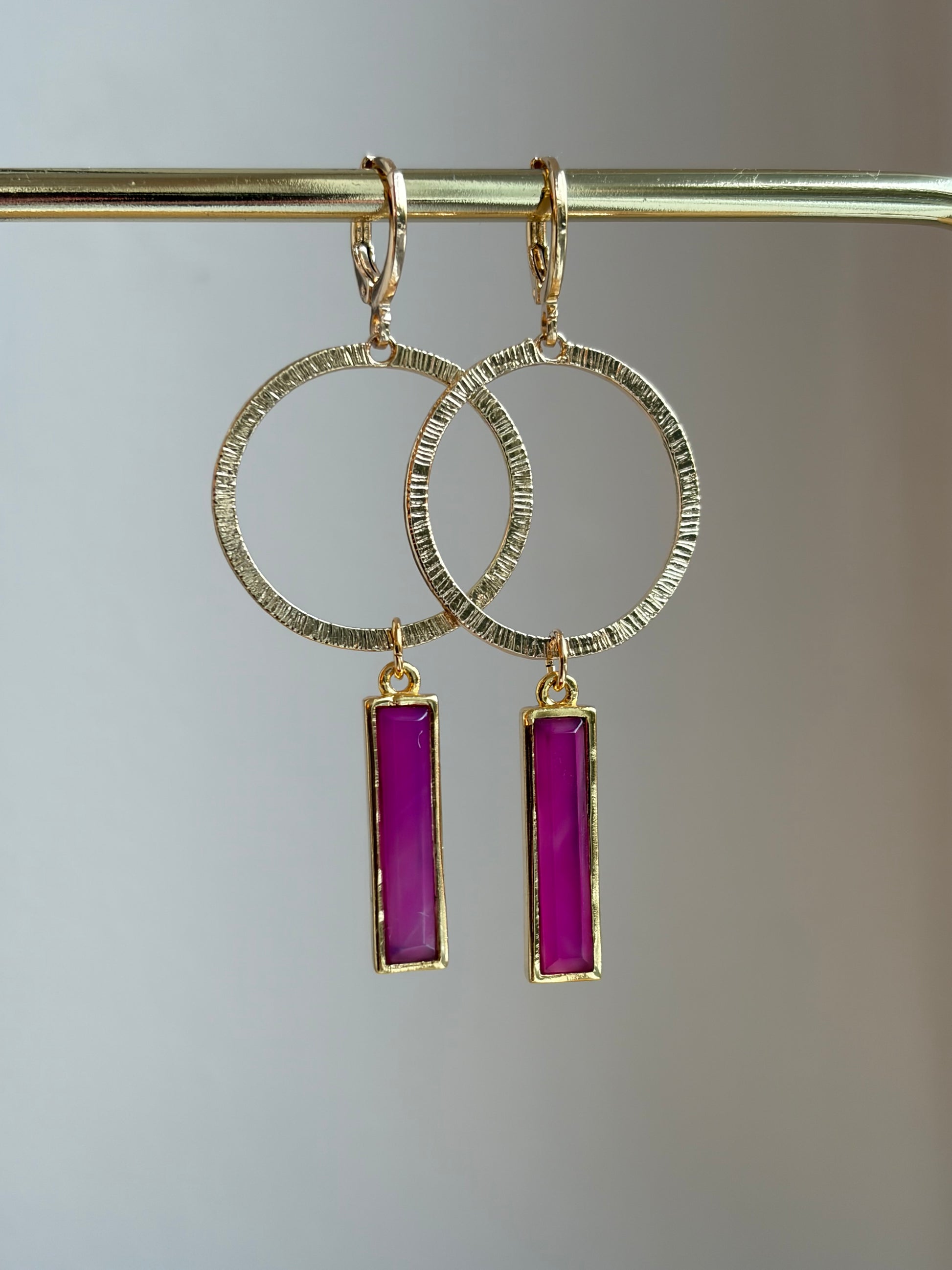 Vergulde ringen met staafjes van Pink Jade.