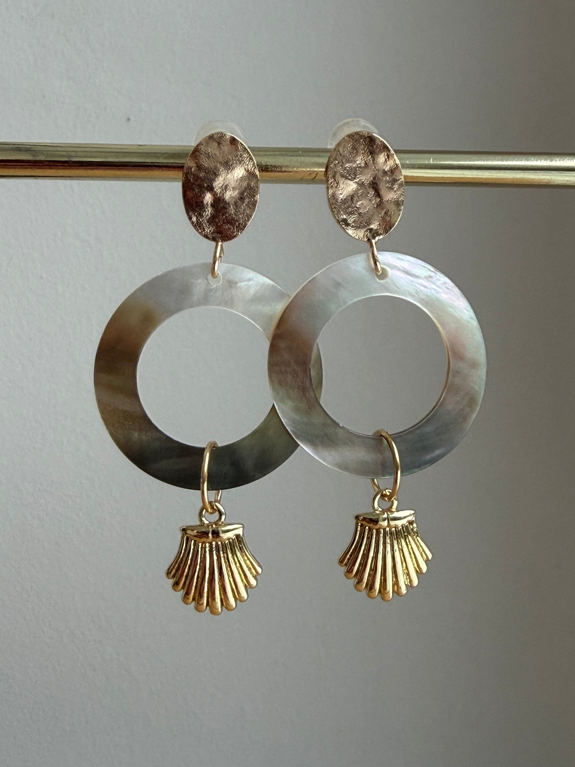 Steker met ringvormige schelp en klein verguld schelpje.