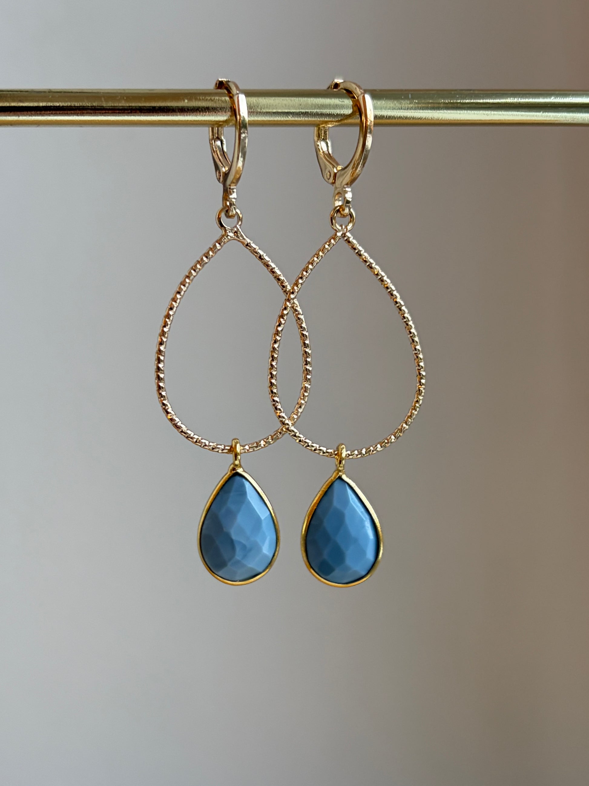 Druppelvormige hanger met druppelvormig steentje (Blue Opal).