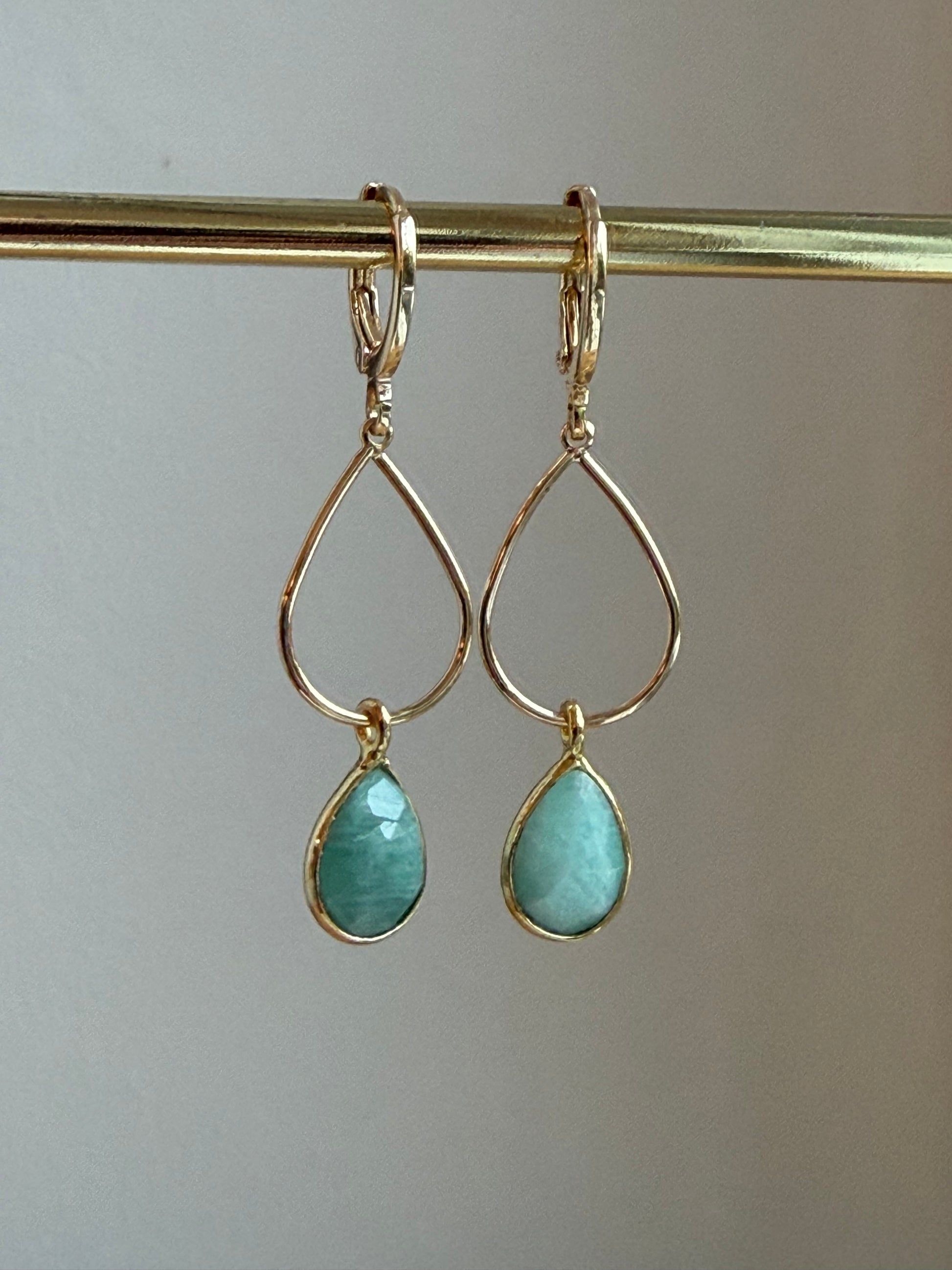 Amazoniet druppelsteentjes aan een druppelvormige hanger.