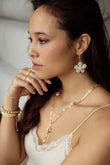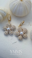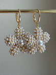 Wauw! Prachtige bloemhanger bestaande uit kleine pareltjes en 1 grote parel aan een vergulde creool.