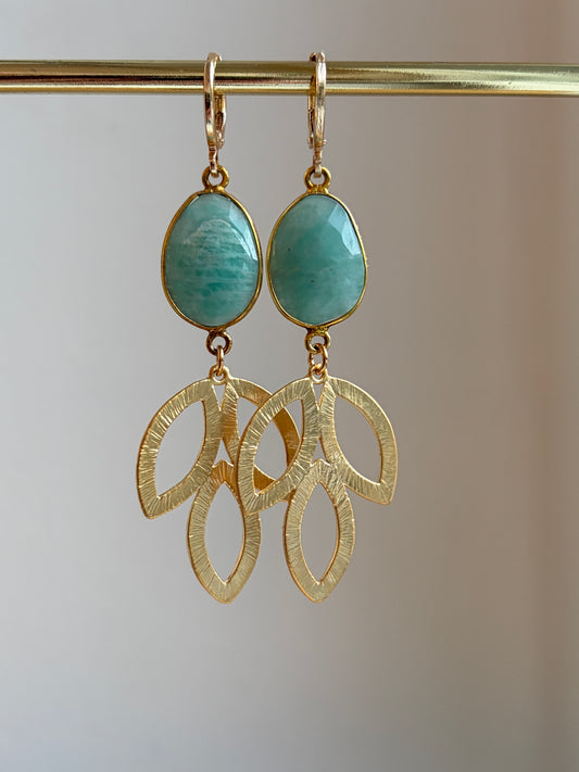 Amazoniet stenen met er gehamerd hartje aan een verguld haakje.
