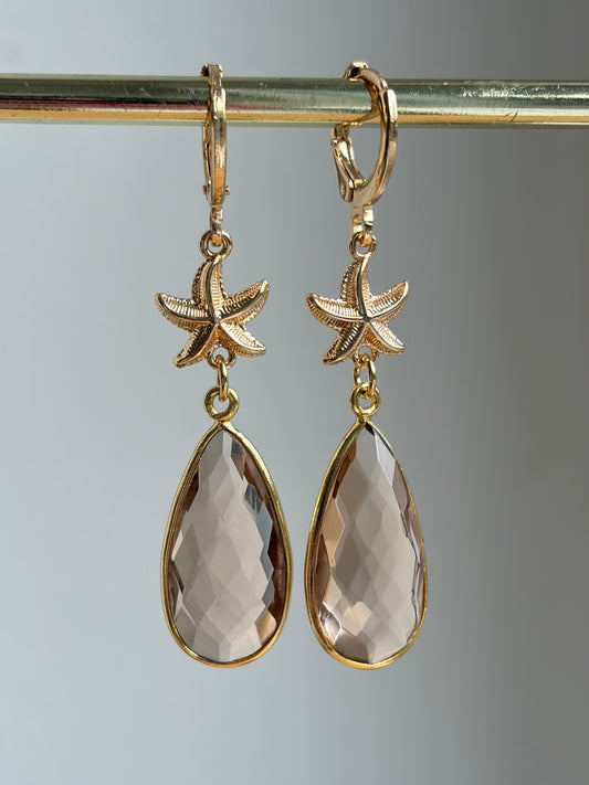 Champagne Quartz steen in druppelvorm aan een klein zeesterretje