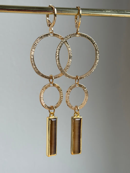 Vergulde mat gouden ringen met een langwerpige bruine Cateye steen.