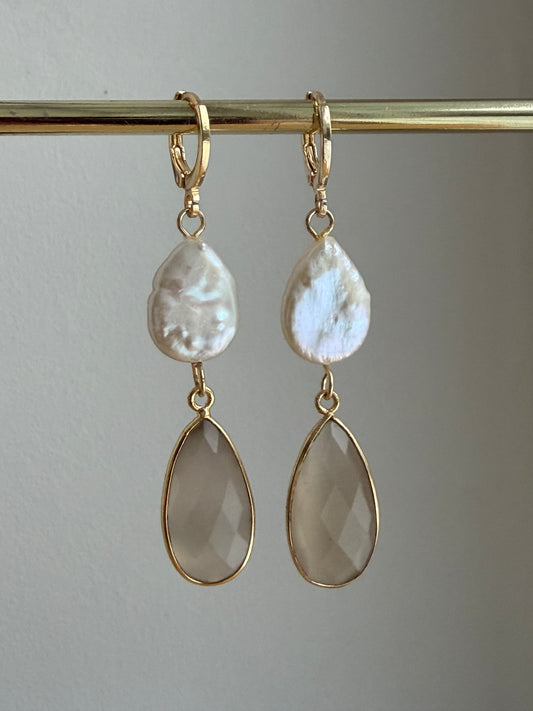 Druppelvormige beige Cateye aan een druppelvormige parel.