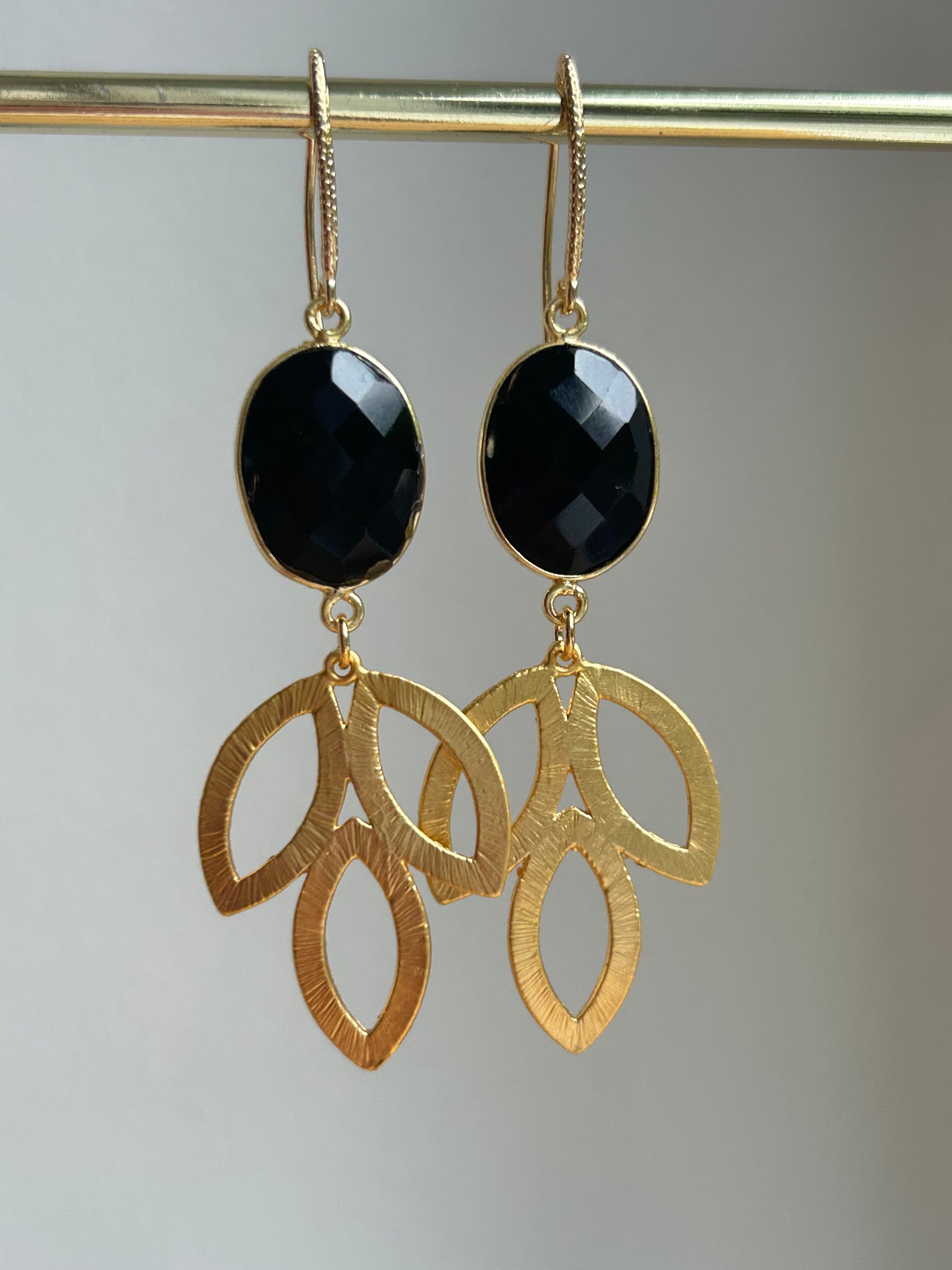Een chique, zwarte Onyx gecombineerd met een gouden hanger in bladvorm. Deze stijlvolle combinatie maken Fadia Zwart tot een perfect accessoire voor zowel zakelijke als feestelijke outfits