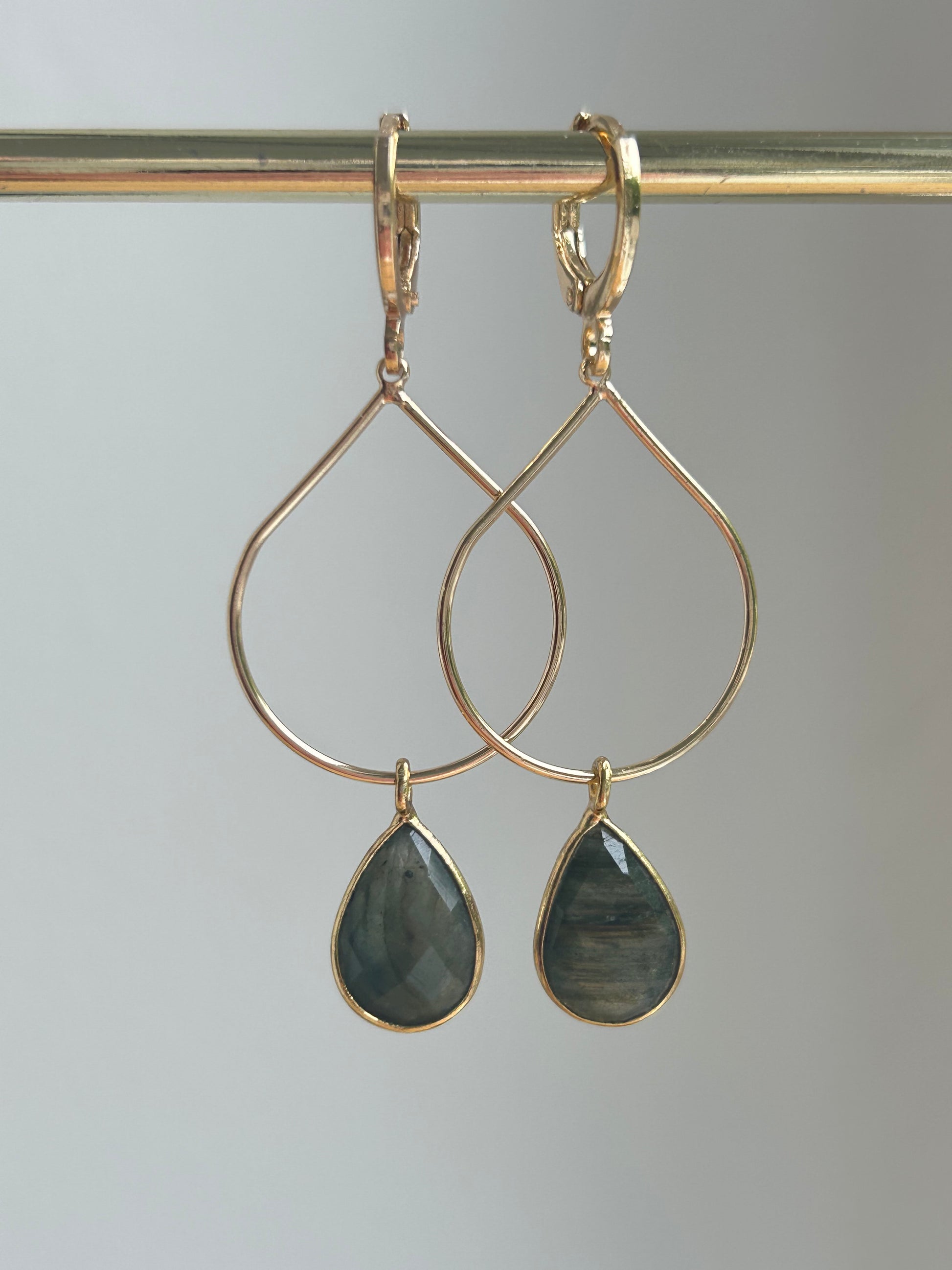Vergulde druppels met een Labradoriet druppel.