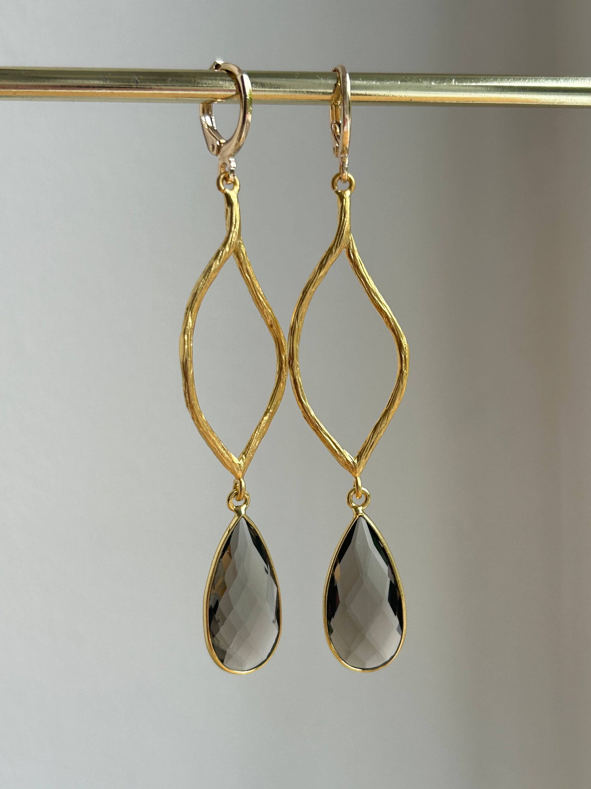 Bruine Rookkwarts druppel aan een prachtige vergulde organische hanger.