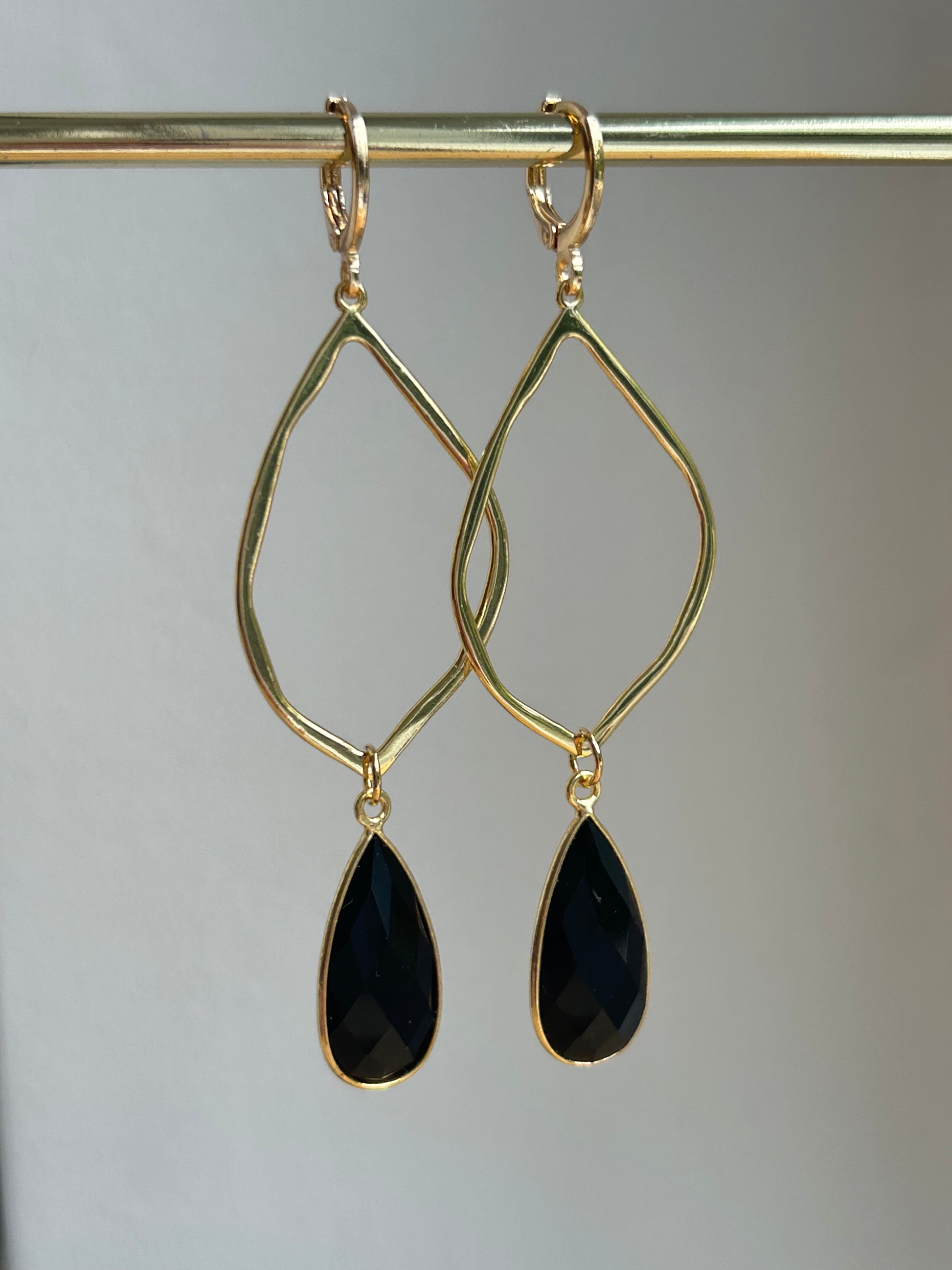 Black Onyx druppel aan een prachtige vergulde organische hanger.