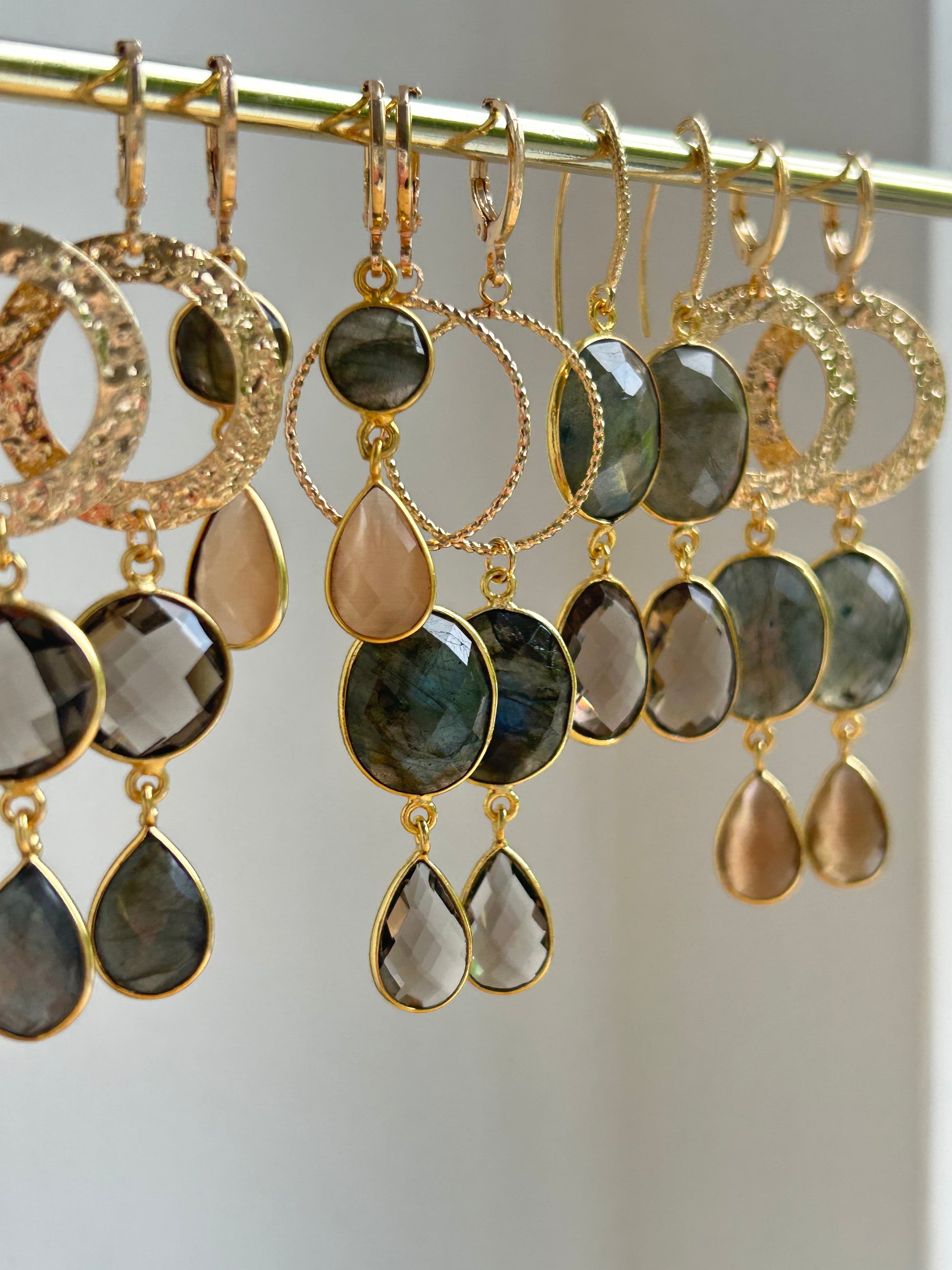 Labradoriet steen bruine Cateye druppel aan een gehamerde hanger.