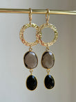 Bruine Rookkwarts steen en black Onyx aan een gehamerde hanger.
